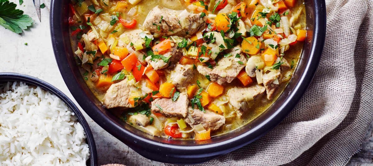 4. Strooi er nog wat peterselie over en serveer met rijst.