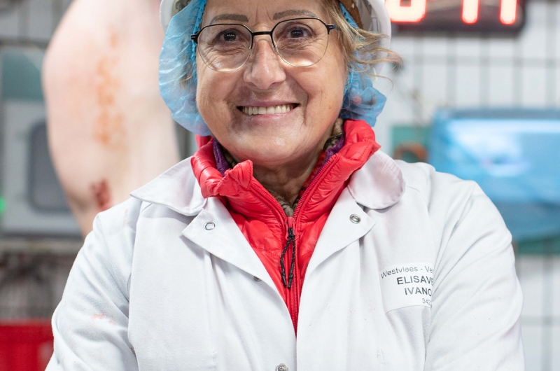 En dus besloot ze haar stoute schoenen aan te trekken en solliciteerde ze met de hulp van haar man voor een job in onze snijzaal. Het gevolg? Elisaveta is al jaren een vaste waarde bij Westvlees. Met haar 63 jaar is ze bijna einde loopbaan, maar het belet haar niet om ons nog altijd even enthousiast te begroeten als we haar ontmoeten.