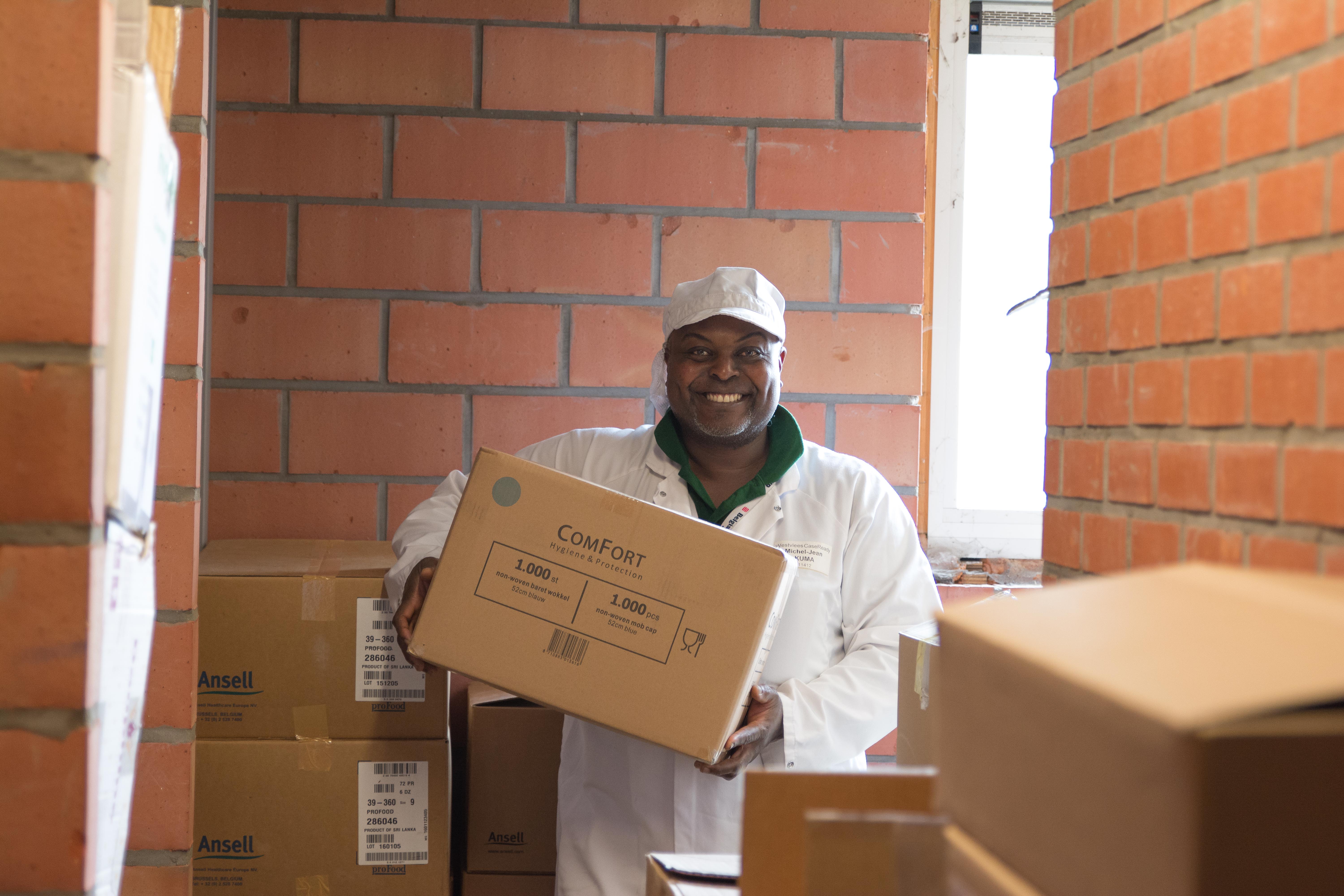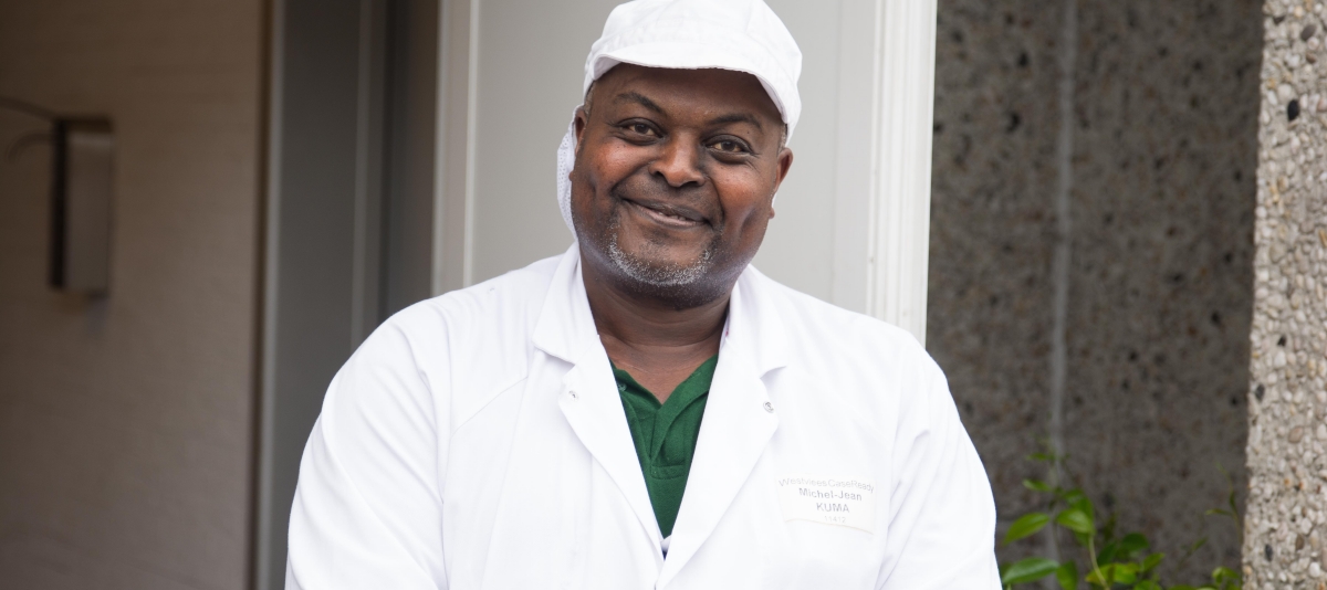 Maak kennis met Mike. Vooraleer hij naar Westvlees kwam, werkte hij 8 jaar in Lovenfosse te Aubel. Tijdens de week verbleef hij in Luik om in het weekend terug te komen naar Kortemark. Aangezien de afstand Kortemark-Westrozebeke nog geen 12 km is, was de keuze snel gemaakt toen hij het aanbod kreeg om dichter bij huis te werken. Mike is sinds jaar en dag verantwoordelijk om te zorgen dat elke bezoeker een goede eerste indruk. Dit start bij de netheid en voorzienigheid van alle hygiënische voorschriften.